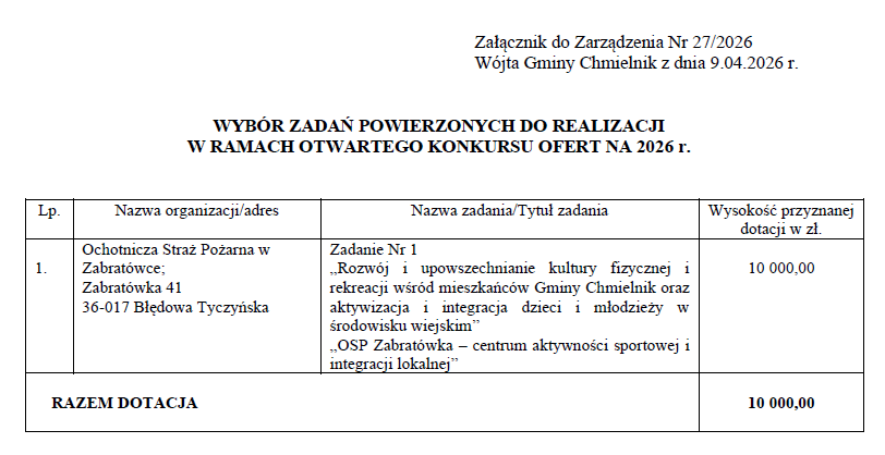Zarządzenie nr 27/2026Wójta Gminy Chmielnik